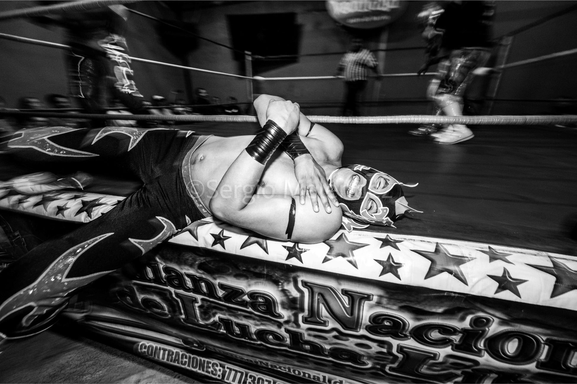 El luchador se retuerce, pero sonríe: sabe que cada golpe es parte del show, del rito, de la entrega.